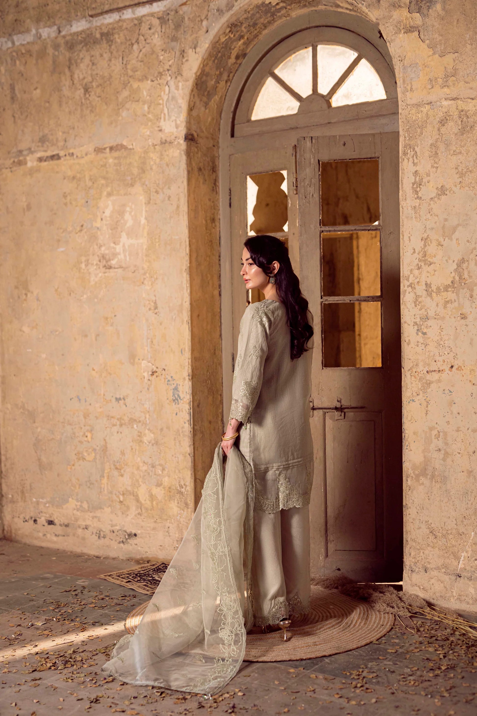 Dupatta: A graceful organza dupatta, adorned with elegant embroidery and finished with 4-side lace detailing.