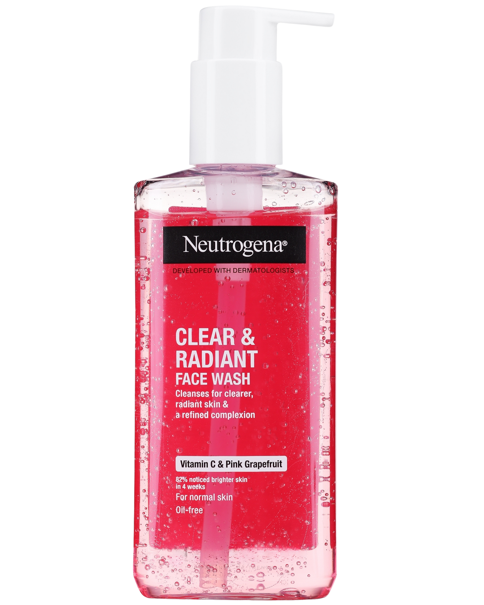 Neutrogena Clear & Radiant Face Wash with pink grapefruit and vitamin c helps prevent imperfections and gently cleanses. A face wash with pink grapefruit and vitamin C which is developed to help prevent imperfections and gently cleanses, without over-drying skin, for a clearer and more radiant complexion.