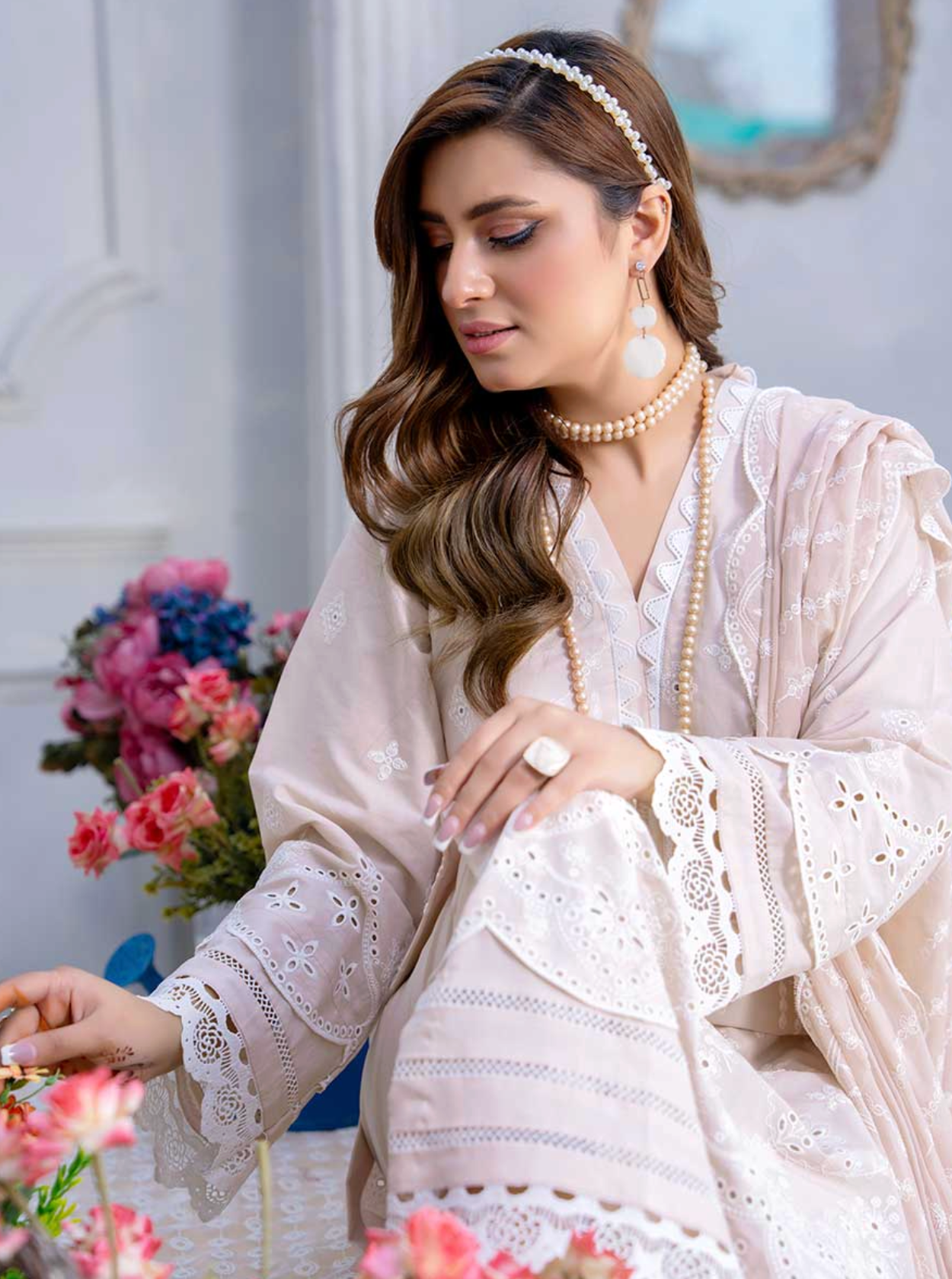 Discover the refined charm of Riwayat by Aalaya, featuring a premium embroidered lawn shirt with detailed boring daman work. This timeless long-sleeved kameez is paired with a luxurious embroidered crinkle dupatta and comfortable plain trousers, offering a perfect blend of style and comfort. Note that the embroidery shirt shown in images is styled for photography purposes, while the standard design features long sleeves. Color shades may slightly vary due to lighting and screen differences, with the brightest hue representing the most accurate color of the product.