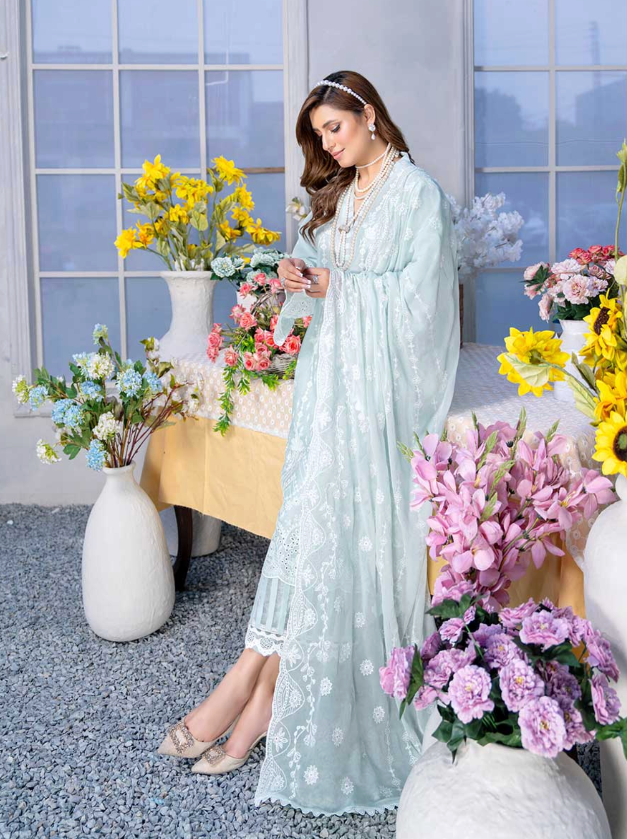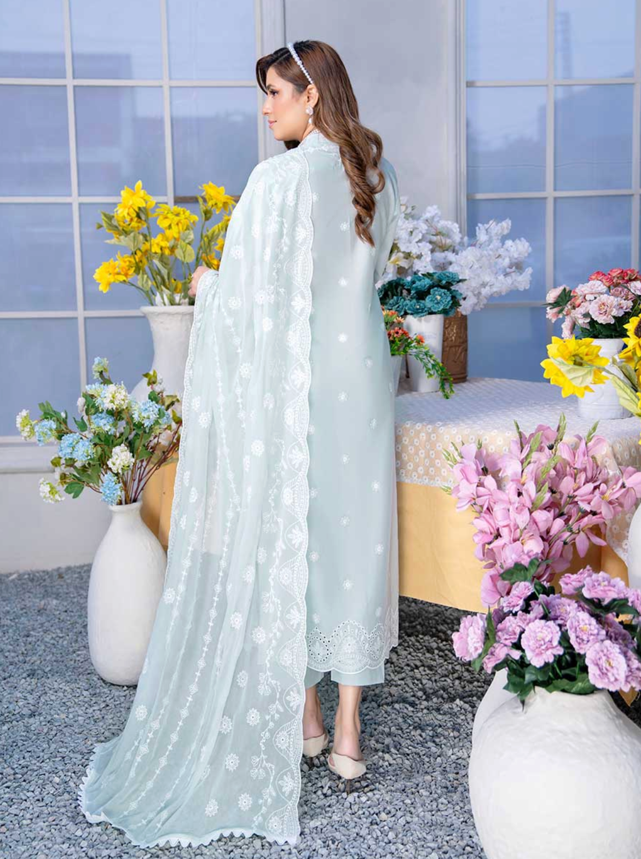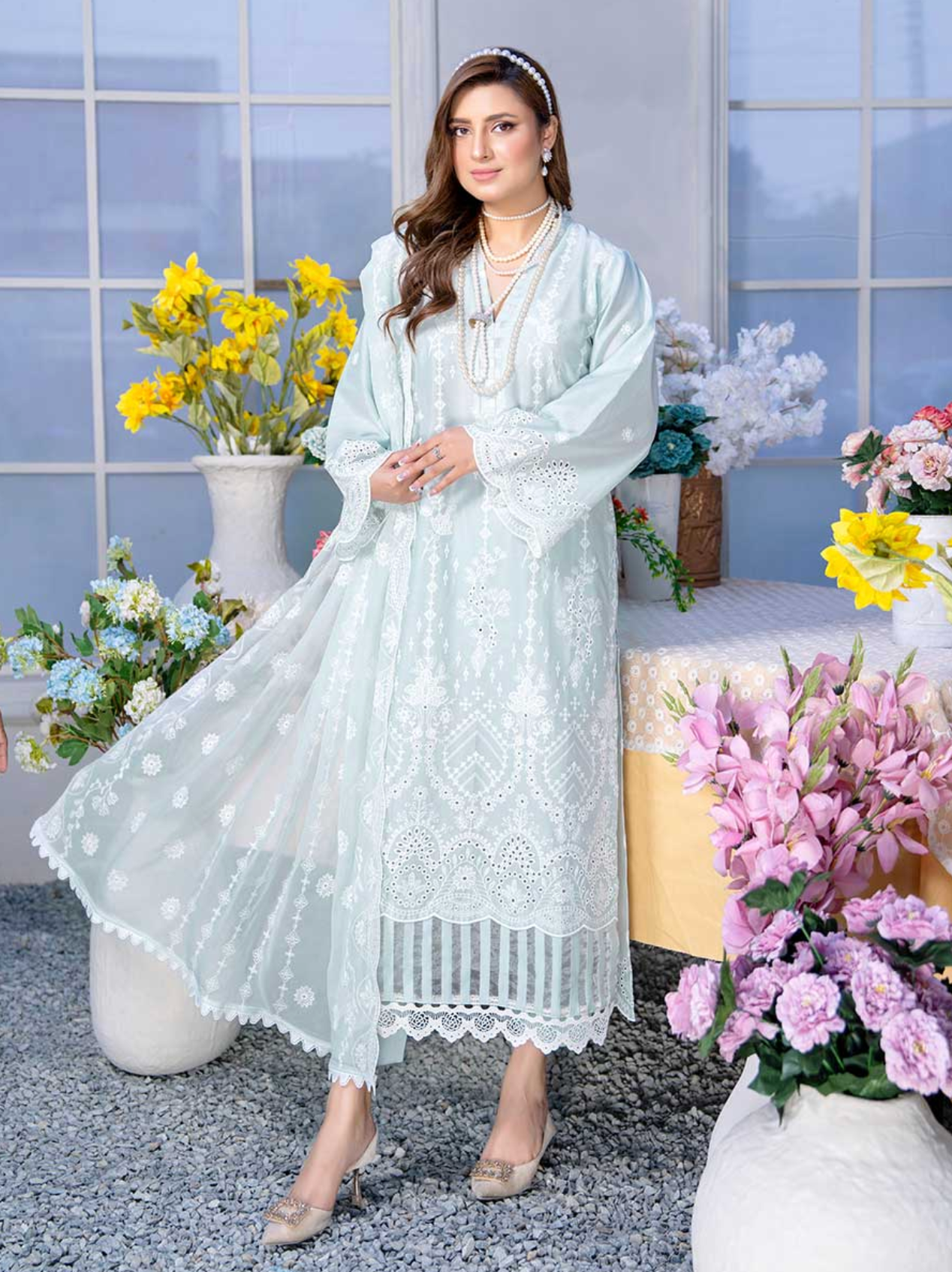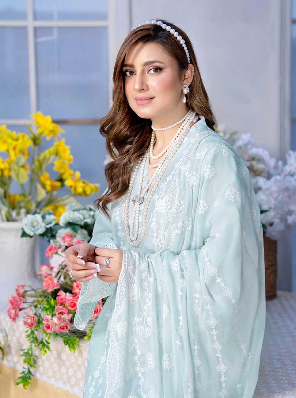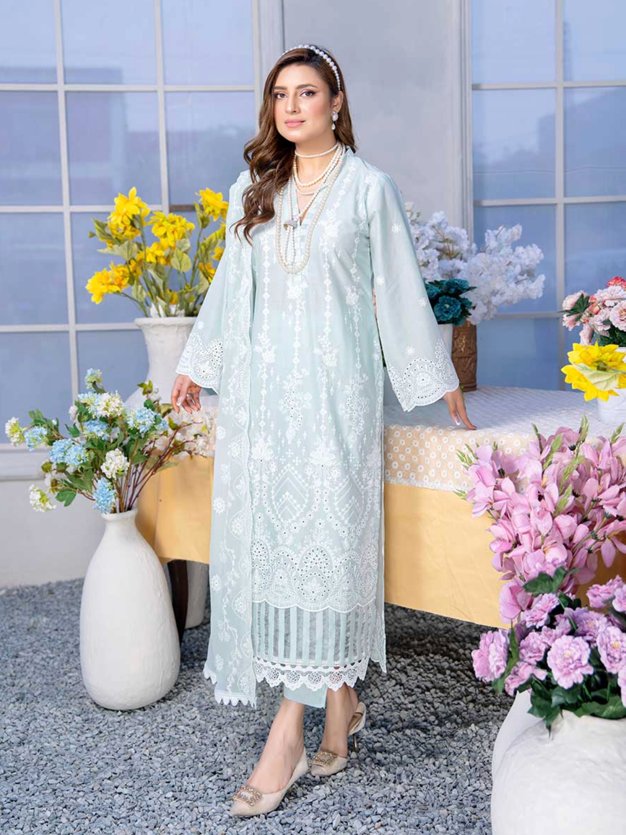 Discover the refined charm of Riwayat by Aalaya, featuring a premium embroidered lawn shirt with detailed boring daman work. This timeless long-sleeved kameez is paired with a luxurious embroidered crinkle dupatta and comfortable plain trousers, offering a perfect blend of style and comfort. Note that the embroidery shirt shown in images is styled for photography purposes, while the standard design features long sleeves. Color shades may slightly vary due to lighting and screen differences, with the brightest hue representing the most accurate color of the product.