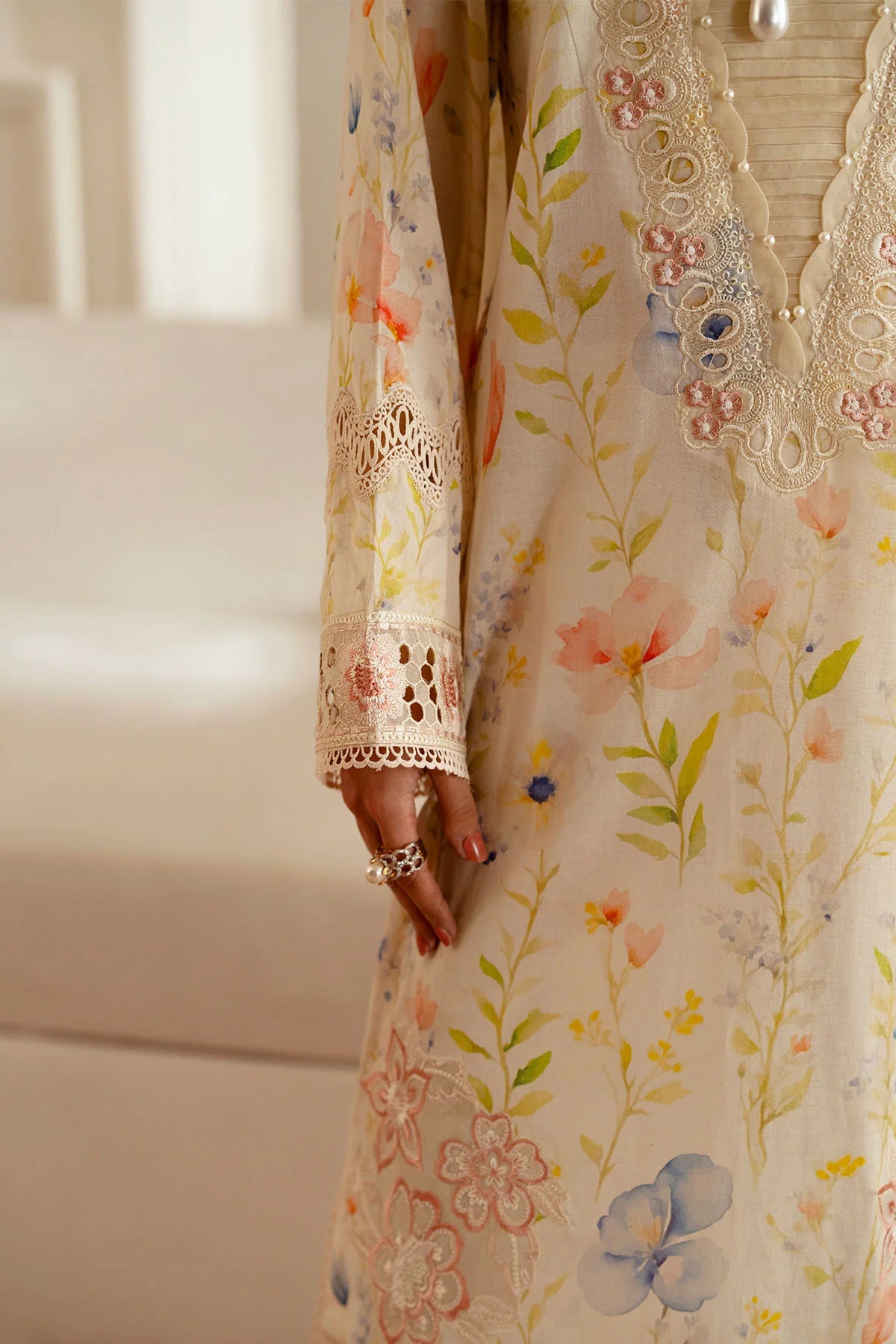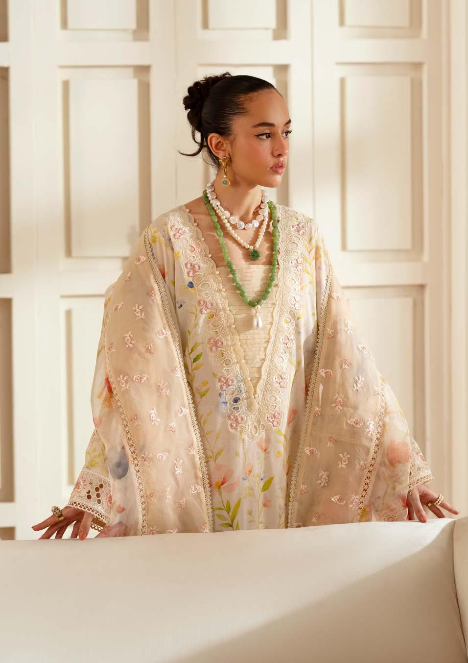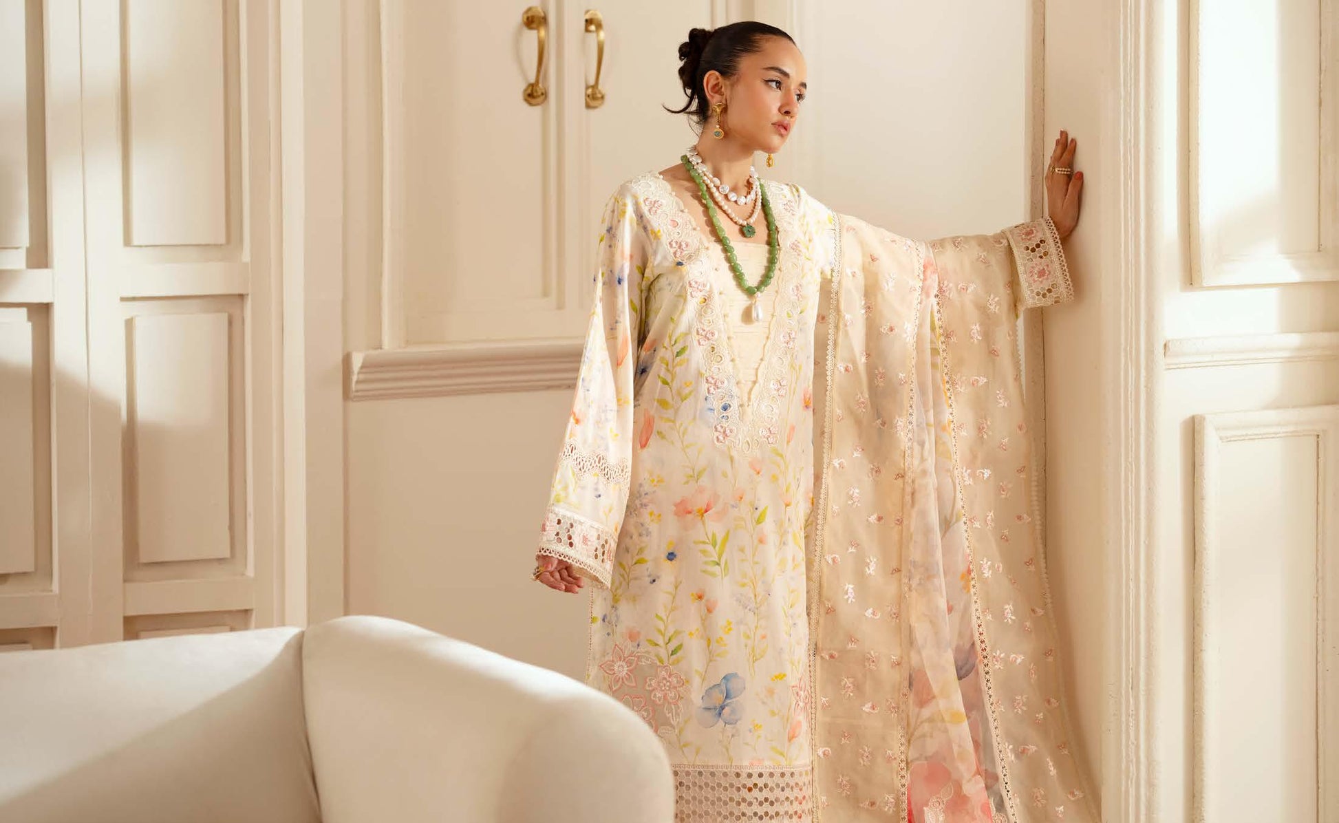This unstitched elegant set includes an embroidered and printed lawn shirt paired with an embroidered and printed organza dupatta, complemented by printed cotton trousers for a comfortable and stylish finish.