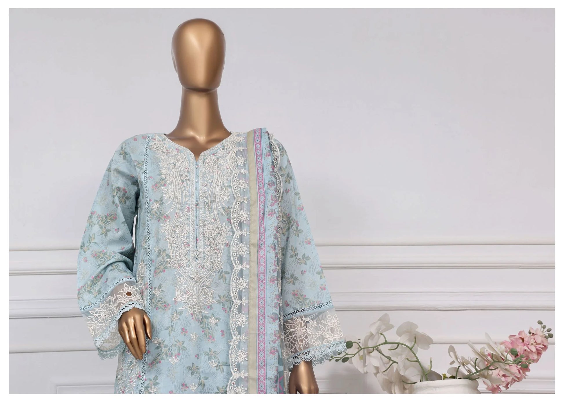 Digital Printed and Embroidered Stitched lawn shirt