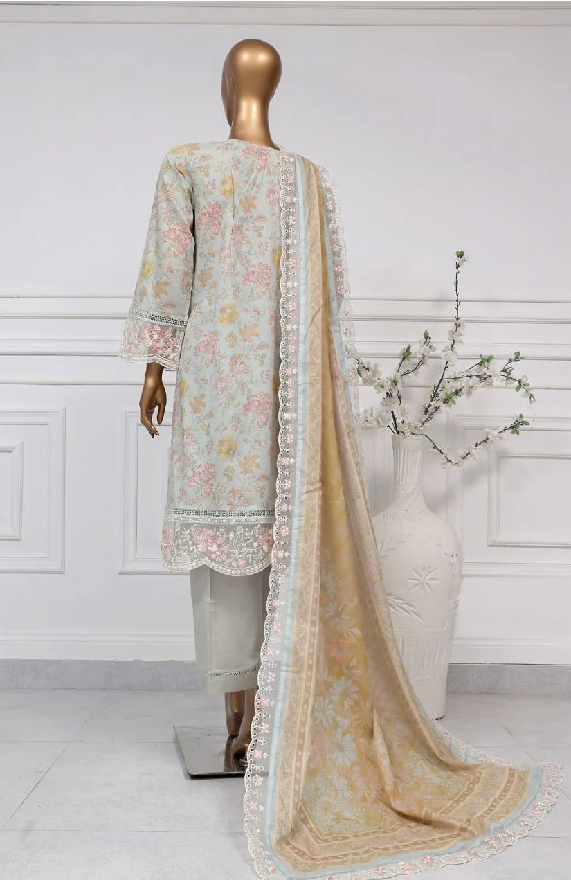 Crafted for elegance and comfort, this ensemble combines traditional craftsmanship with modern design, making it an ideal choice for festive occasions. The breathable lawn fabric ensures all-day comfort while the detailed embroidery adds a refined touch to your festive wardrobe.