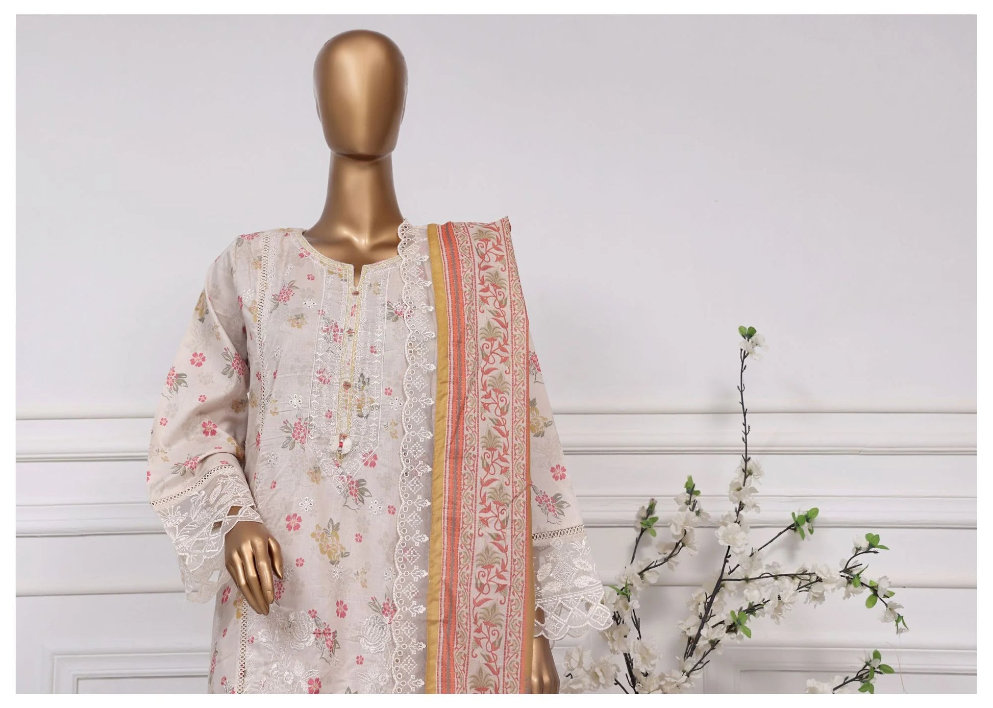 Crafted for elegance and comfort, this ensemble combines traditional craftsmanship with modern design, making it an ideal choice for festive occasions. The breathable lawn fabric ensures all-day comfort while the detailed embroidery adds a refined touch to your festive wardrobe.